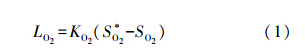 反應器設置循環段進行水力混合,內部流速約為1.25 cm · s-1,利用NaCl為示蹤劑進行水力停留時間分布(RTD)實驗,結果表明,RTD曲線分布接近N=1時完全混合反應器,因此,可以假定MABR反應器內部處于完全混合狀態.氧通量實驗測定氣體氧表面負荷,采用最大氧通量近似計算,在氣體氧分壓為20 kPa,循環流速為800 L · h-1條件下得到反應器最大氧傳質系數KO2=0.81 m · d-1,本試驗MABR最大氧通量由式(1)(Pellicer-Nàcher et al., 2010)計算.