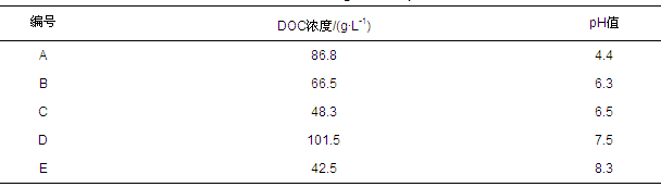 表1 五種去污劑原液的DOC濃度及其水溶液的pH值