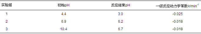 表3 反應前后溶液pH值變化及其反應動力學參數(shù)