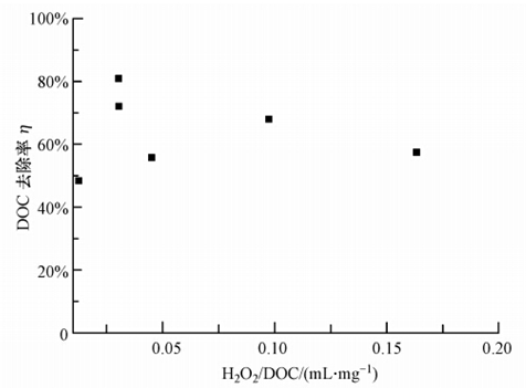 圖 4 DOC去除率隨H2O2/DOC比值的變化規(guī)律