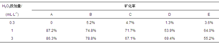 表2 H2O2投加量對5種去污劑礦化率的影響(反應時間90 min)
