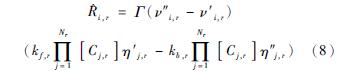式中:Nr為反應(yīng)r的化學(xué)物質(zhì)數(shù)目;Cj,r為反應(yīng)r中每種反應(yīng)物或生成物j的摩爾濃度;η′j,r為反應(yīng)r中每種反應(yīng)物或生成物j的正向反應(yīng)速度指數(shù);η″j,r為反應(yīng)r中每種反應(yīng)物或生成物j的逆向反應(yīng)速度指數(shù);Γ表示第三體對(duì)反應(yīng)速率的凈影響。這一項(xiàng)由下式給出: