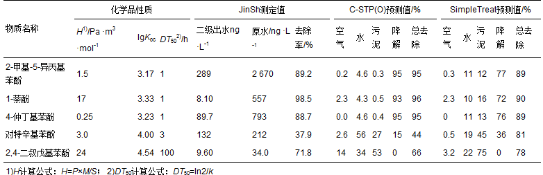表 6 5種苯酚類化學品在STP中去除率實測值和預測值比較
