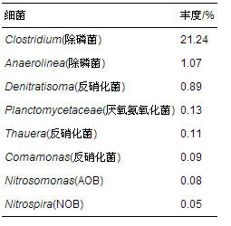 表 1 屬水平上,被鑒定出的氨氧化菌(AOB)、 亞硝酸氧化菌(NOB)、 反硝化菌和除磷菌及其豐度