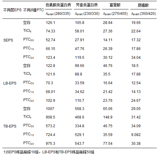 ?表 2 不同B值PTC對(duì)EPS熒光強(qiáng)度的影響 1)