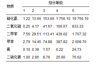 2.3 臭氣的惡臭污染潛力計(jì)算及等級(jí)劃分
