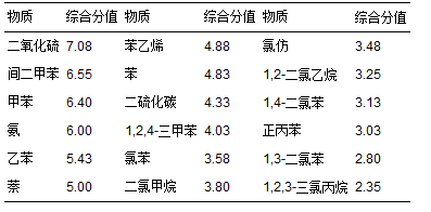 ?表 1 主要惡臭污染物篩選指標(biāo)評(píng)分