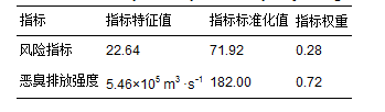 風(fēng)險(xiǎn)指標(biāo)和臭氣排放的標(biāo)準(zhǔn)化值構(gòu)成向量為: