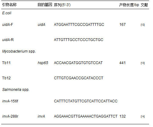 本研究中大腸桿菌和分枝桿菌的qPCR檢測采用SYBR? Green qPCR. 采用Taqman? qPCR定量檢測沙門氏菌. 所采用的目的基因和相應引物序列見表 2.