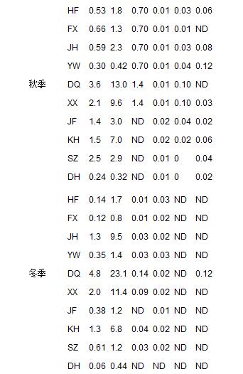 表 2 不同季節(jié)采樣組10家豬場沼液抗生素含量的變化情況 1)