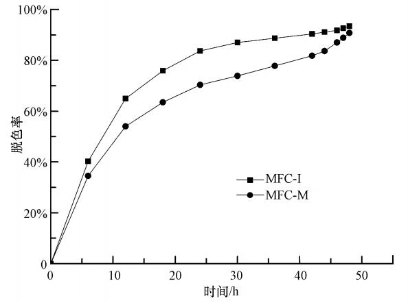 臭氧氣體濃度用碘量法測定.反應結束后,用氮氣將系統中殘留的臭氧吹出,并用1% KI溶液收集.實際消耗的臭氧由公式(1)計算.