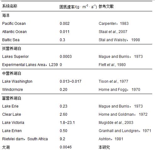 表2 太湖水體與其他水系統(tǒng)的固氮作用比較