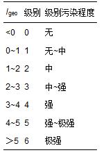 表3 Igeo與重金屬污染程度的關系