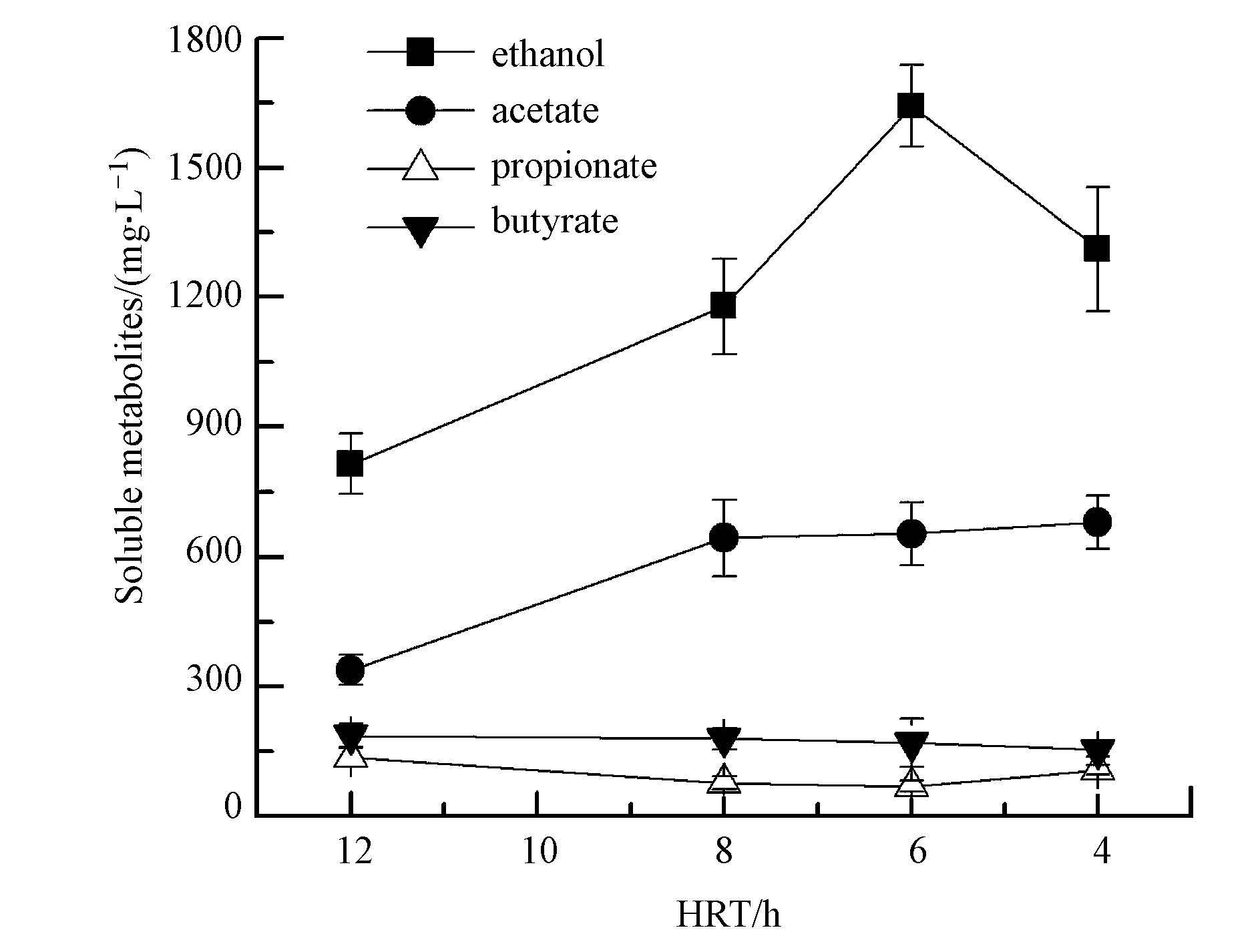 圖3 ACR乙醇型發酵在不同HRT下溶解性發酵產物
