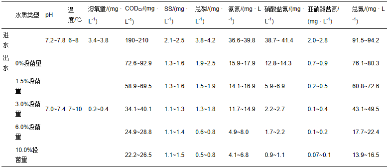 人工濕地系統(tǒng)穩(wěn)定運行半年后,于2013年1月中旬(水溫的變化范圍為6~8 ℃)開始投入Pseudomonas flava WD-3,接種方法采用一次性投加.接種量V(菌液)/V(污水)為1.5%~10%,以未接菌的人工濕地為對照組.