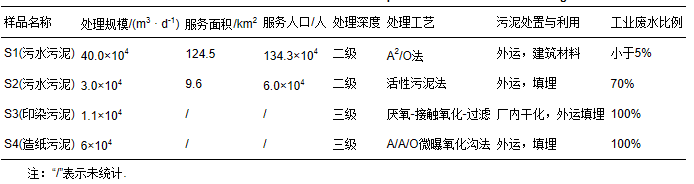實驗中所用的污泥取自廣州市具有代表性的大型市政污水處理廠脫水污泥(S1)、廣州市開發區某大型污水凈化廠脫水污泥(S2)、東莞某印染廠脫水污泥(S3)、廣州某造紙廠脫水污泥(S4). 4種污泥的來源情況見表 1,可見這4種污泥的來源在污水成分、處理工藝及規模等方面都有較大的區別.