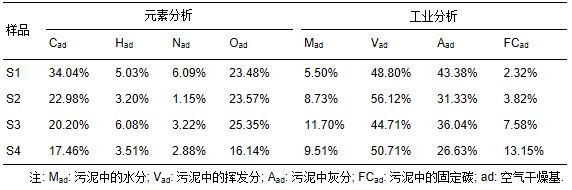 在壓濾污泥終端進行系統取樣,取回后的樣品放在陰涼通風處晾干后用粉碎機粉碎,粉碎后的污泥樣品轉移到瑪瑙研缽中研磨至所有成分過100目篩,然后在恒溫烘箱內于105 ℃干燥24 h. 實驗所采用污泥的元素分析、工業分析見表 2. 實驗主要以廣州市具有代表性的大型生活污水處理廠脫水污泥(S1)為主體,摻燒其他3種含工業廢水較多的污泥.