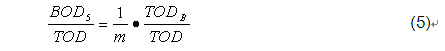 ???? 式(4)揭示了廢水中的BOD5與TOD的內在聯系。整理可得: