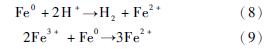 ?  反應(8)?(9)能夠為Fenton反應大量提供Fe2+,使得反應(1)能最大程度地進行,Fe2+的產生方式使得副反應減少,Fe2+利用率高,這樣產生的·OH就比其他2個反應體系多,從而使得COD去除率最高?