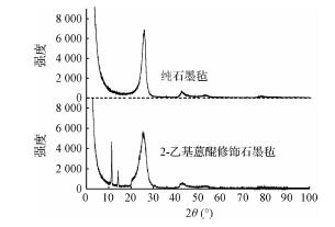 采用日本Rigaku-D/max-2500型X-射線粉末衍射儀測定石墨氈上修飾的2-乙基蒽醌的晶體結(jié)構(gòu),Cu靶,步長0.02°,管電壓40kV,管電流100mA,2θ測定范圍:0.5°~100°。