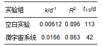 空白對照實驗:把1 L 500 μg · L-1紅霉素溶液倒在燒杯中,放置在與微宇宙系統相同的位置,分別在0、0.5、1、4、7、10、14、21、30 d取樣,檢測水中紅霉素濃度.