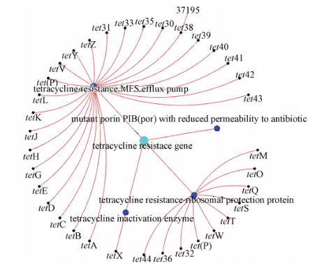 現階段發現的微生物對抗生素產生抗性的機制主要有4種(Allen et al., 2010):細胞通透性障礙、外排泵、抗性突變和抗生素失活機制.不同抗生素產生的抗性機制不一樣.以四環素抗性基因為例(圖 1),迄今為止主要有35種類型的四環素抗性基因,包括外排泵機制24種、抗生素失活機制1種、核糖體保護蛋白機制(抗性突變機制)10種(McArthur et al., 2013).一般在研究抗生素抗性基因分布的時候,往往選擇特定幾種抗性基因來研究,以四環素抗性基因為例,外排泵機制選擇tetG、tetA、tetC等較多,酶失活機制選擇tetX,核糖體保護蛋白機制選擇tetM和tetQ較多.這幾類四環素抗性基因在環境中豐度一般比較高,具有代表性.不同環境中并不是存在所有抗性機制的抗性基因,這可能同定量PCR方法有一定的檢測限有關.如Zhu等(2013)采用定量PCR方法檢測到了28種四環素抗性基因中的22種.隨著分子生物學技術的不斷發展,新的抗性基因也不斷被發現.如Su等(2014)利用功能基因組學的方法,篩選了不同土壤環境樣品中多種抗生素抗性基因,結果發現,同已發現的抗生素抗性基因相比,氨基酸水平上只有2%的抗性基因的相似性在90%以上,67%以上抗性基因的相似性低于60%.這說明環境中還有很多尚未被認識的抗性基因.另外,微生物不斷進化,人們相信新的抗生素抗性機制也會隨之產生(Karisetty et al., 2013).